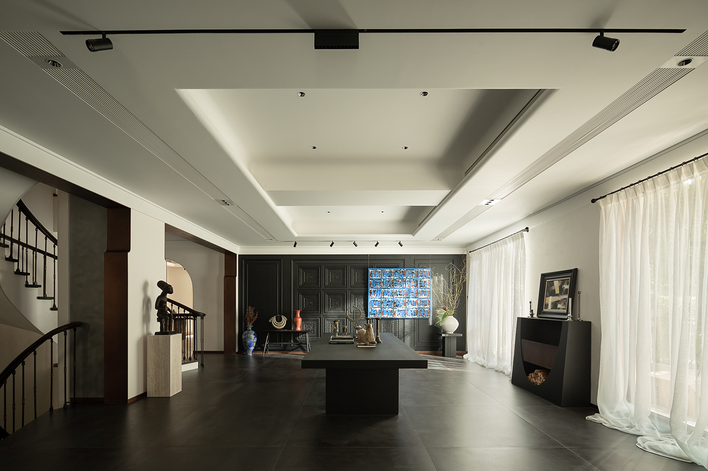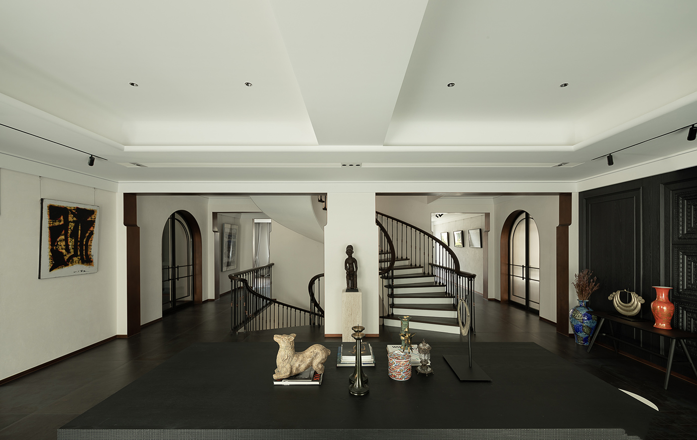 业主喜欢珍藏艺术品,,,,,有极高的品味及审美素养;;;;;;;;别墅主人对程序、古典、中式及现代气概,,,,,均有倾爱。。。。。设计师凭证业主的喜欢将几种气概融合空间中,,,,,为业主营造出独吞的“艺术家”。。。。。