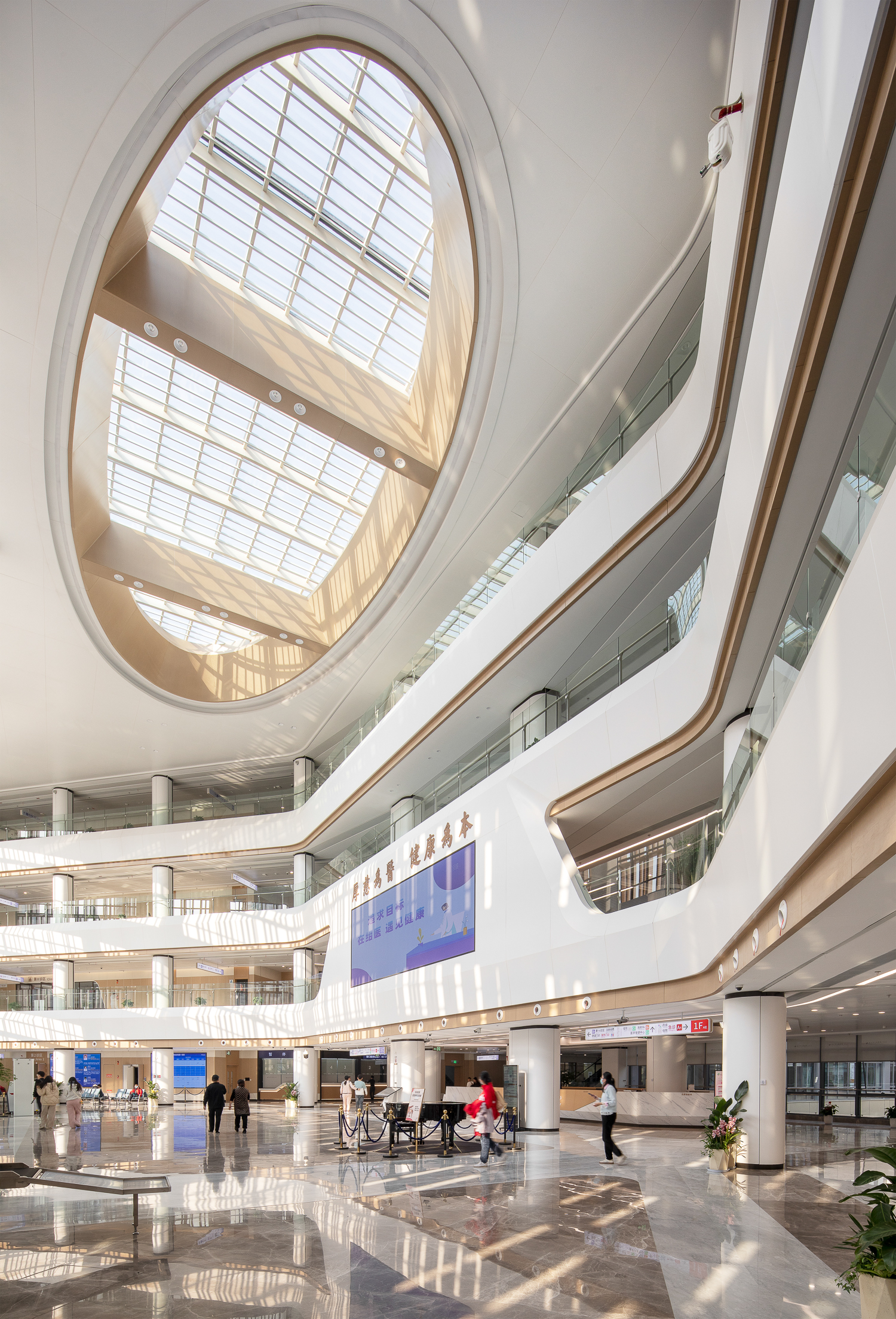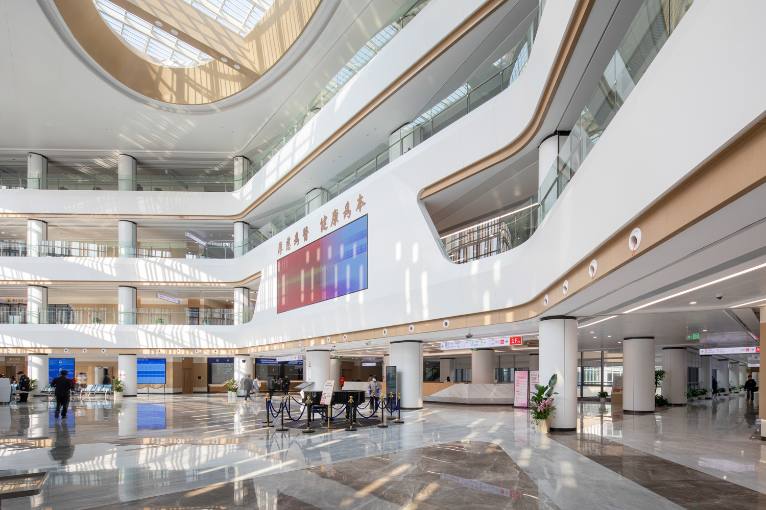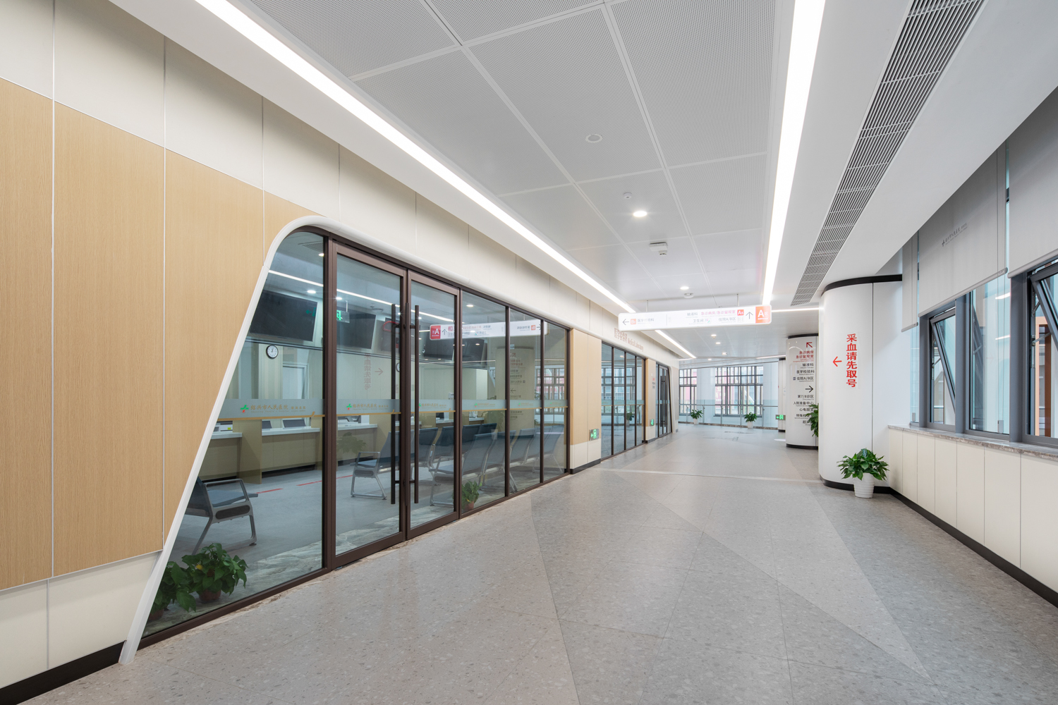 项目总修建面积达 26 万平方米,,,,,,分为 A、B 两区块,,,,,,之间以一座壮观的桥梁相连,,,,,,犹如一条纽带将两个区域细密相连,,,,,,展现泛起代化医院的雄伟气焰。。。。。。。。医院以“园林式医院”为定位,,,,,,巧妙地将绍兴的竹林、茶园、石桥等元素融入修建肌理。。。。。。。。闲步其中,,,,,,让医疗空间成为转达都会文化的生动载体。。。。。。。。