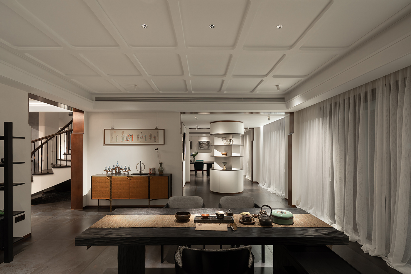 业主喜欢珍藏艺术品,,,,,有极高的品味及审美素养;;;;;;;;别墅主人对程序、古典、中式及现代气概,,,,,均有倾爱。。。。。设计师凭证业主的喜欢将几种气概融合空间中,,,,,为业主营造出独吞的“艺术家”。。。。。