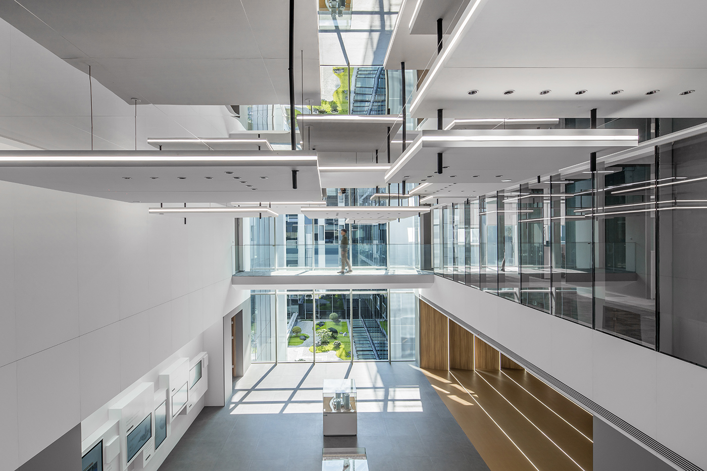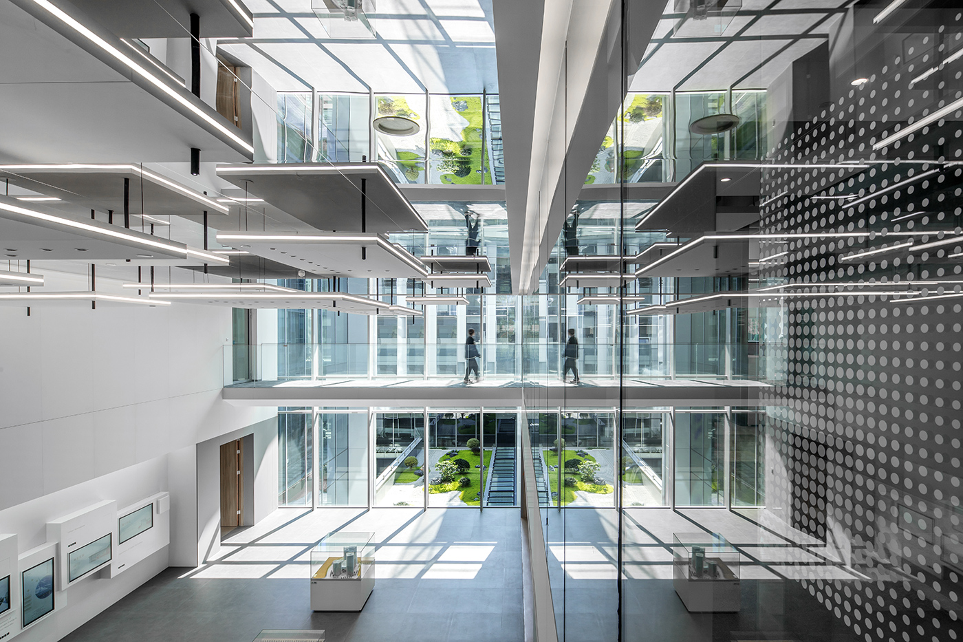 大厦不但仅是一座办公楼,,, ,,,更是一座承载着历史与文化的艺术殿堂。。。。。每一个幕墙板块都像一件艺术品,,, ,,,流通的线条、美丽的色彩,,, ,,,犹如水墨画中的笔触,,, ,,,为这座修建付与了高雅而高尚的灵魂。。。。。大厦塔楼每四层创立一个笔直院落,,, ,,,似乎是苏州民居中一进进的院落在笔直偏向上的现代演绎;;;;;每四层一圈外廊形成空中环廊,,, ,,,宛如苏州园林中的“廊”,,, ,,,将人与自然完善融合。。。。。笔直院落与空中环廊配合组成观景最美中轴线,,, ,,,让人在都会的繁华中明确到苏州园林的绝佳视角。。。。。下沉庭院及光导管的空间结构,,, ,,,使得办公区域采光系数获得提升,,, ,,,有用改善了室内自然采光条件。。。。。南北双庭院和裙衡宇面光导管及天窗的构想,,, ,,,更是在知足功效需求的同时,,, ,,,将苏州古板园林的美学施展得淋漓尽致。。。。。