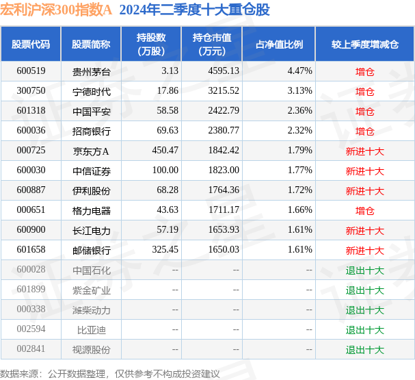 None宏利沪深300指数A为指数型-股票基金,左证最新一期基金季报走漏,该基金钞票树立:股票占净值比93.43%,无债券类钞票,现款占净值比6.65%。基金十大重仓股如下: