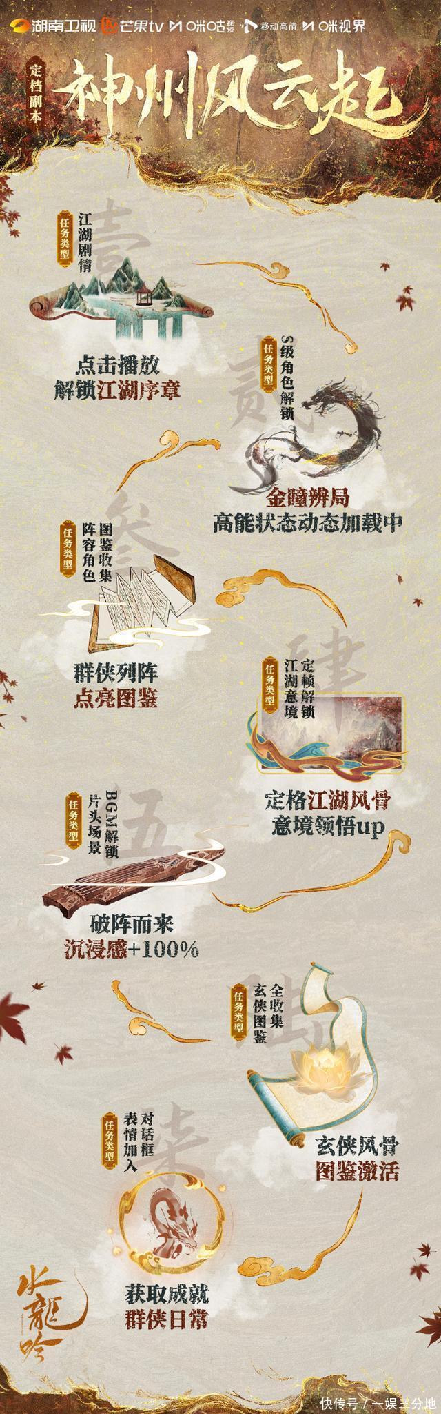 在《暗河传》开播后,另一部备受期待的玄侠剧《水龙吟》也定档了, 10月24日18:00 起,芒果TV会员、咪咕视频钻石会员抢先不雅看。并在 10月30日20:00 起,湖南卫视金鹰独播戏院上星播出。