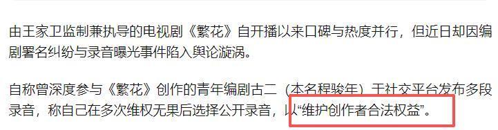眼看剧组回复后,网友对该事件的柔柔稳重镌汰,古二却又在应付平台发布多段与王家卫和秦雯的灌音。其中包含王家卫、秦雯与他的聊天对话,被古二标注为“会议纪要”。