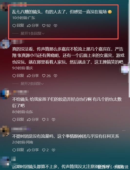 《王牌9》看东说念主下菜碟?沙溢没用、脸肿的她太假,沈腾被气到莫名 《王牌对王牌 9》现时是真不成了,嘉宾镜头乱得没法说,玩的游戏也全是老一套,极少新意都莫得。贾玲早就走了,连沈腾都将近离开,现时又来个玩不起的唐国强,口碑透顶崩了!不雅众都说:“每期来那么多嘉宾,有的连几个镜头都捞不着,根底没法看!” 我看了最新一期,发现口碑翻车不全是唐国强的问题,其他东说念主也有职守,这节目现时真的食之无味弃之可惜。这期王牌队加了闫妮和黄晓明,唐国强带了时间少年团的东说念主。唐国强和于洋跟那帮年青东说念主根底不在一个频说念,尴尬得不成!反不雅王牌队的东说念主,彼此簸弄还挺有好奇瞻仰。黄晓明说我方混名 “刀削的下巴”,金靖和沙溢立马演被割伤的形式,特搞笑。关晓彤说我方是 “肝晓彤”,闫妮还较真忘了她简直的姓,连一皆拍过《弄堂东说念主家》的杨迪都看不下去了。 闫妮混名 “眼妮”,干巴巴先容完,也曾沙溢情商高,接了句 “你是我的眼” 才没让她下不了台,可其后两东说念主手搭一皆又尬住了,闫妮接不上梗,沙溢也没法继续。传声筒游戏里,闫妮连台词都记不住,故意卡壳发愣,场外沙溢和李梦提醒,她还一副微醺别惊扰的形式。节目组为了给她加镜头,还搬出《弄堂东说念主家》的台词,偏疼也太较着了!就算有教唆器,她台词也曾说得东一块西一块,真搞不懂她来干嘛,没幽默还总掉线,苹果肌肿得都快爆炸了,不会玩就好好演戏,把镜头留给时间少年团多好! 沙溢和沈腾平方特性好,此次都被气到莫名。不外也多亏闫妮隐隐,一直没镜头的李梦才露馅了一下。沙溢在《驱驰吧》就靠嘴出梗,到《王牌》也就沈腾能接他的梗。唐国强玩赖,金靖梗尬,他俩还能用笑声圆回首,连 “红细胞” 那么尬的步调,沈腾都卡壳傻笑了,沙溢还能把节目名圆出来。