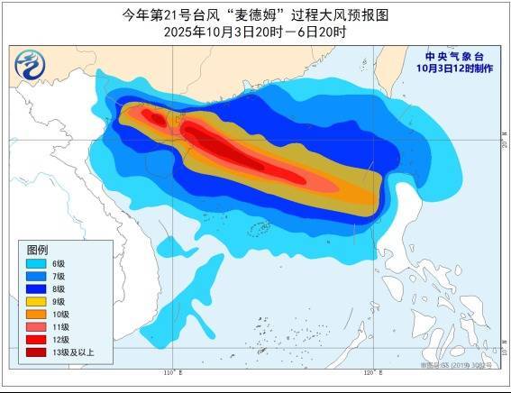 r大风预告:3昼夜间至6日白昼,广东雷州半岛和中西部沿海、广西沿海、海南岛及沿海、西沙群岛、中沙群岛、黄岩岛隔壁海域将有6~8级风,南海中北部、琼州海峡、北部湾中北部有9~11级风,“麦德姆”中心进程的隔壁海域或地区风力可达12~14级、阵风15~17级。